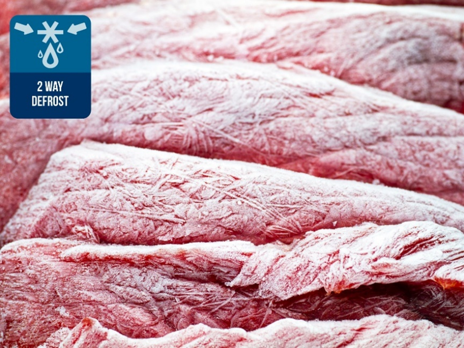 Cu ajutorul functiei 2 Way Defrost poti alege ca decongelarea produselor tale sa se realizeze in functie de greutatea acestora sau in functie de un anumit timp setat.