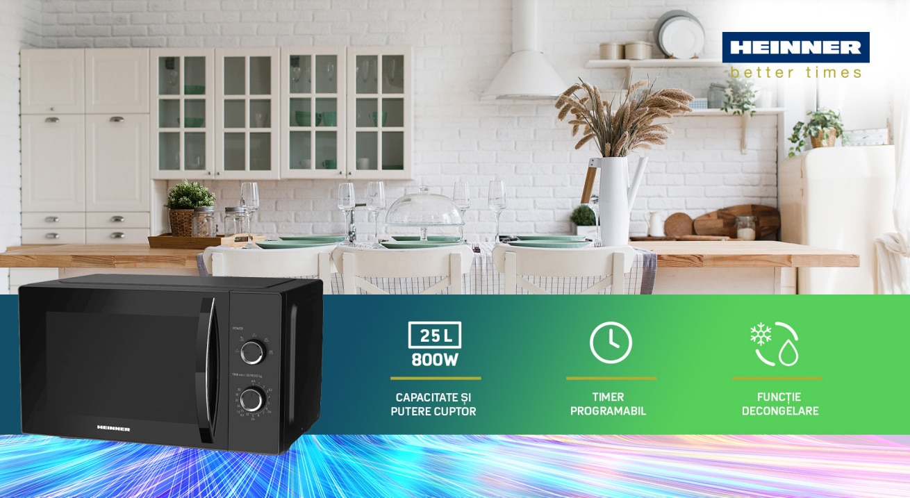 INICIO / EMAG / Cuptor cu microunde Heinner HMW-MD25MBK, 25 l, Control mecanic, 800 W, Negru