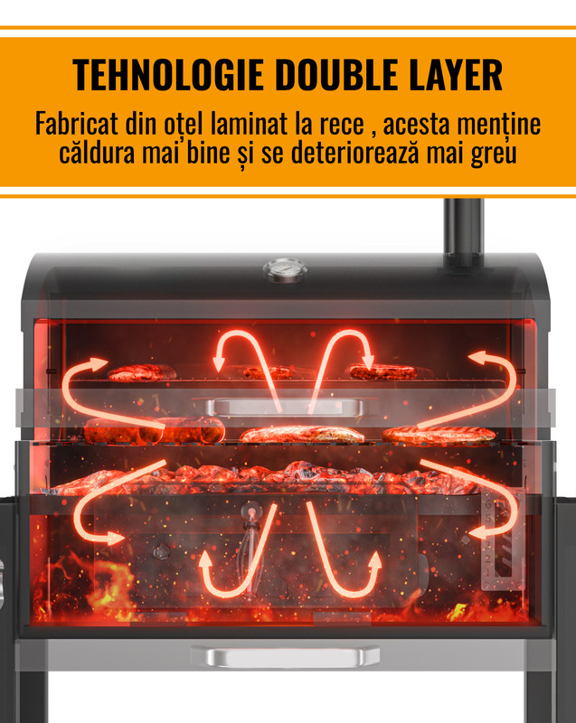 Construit din otel laminat la rece, tehnologia Double Layer mentine caldura mai eficient, asigurand o temperatura constanta pentru preparate. Materialul durabil rezista mai bine in timp, fiind mai putin predispus la deformare sau coroziune, chiar si in conditii de utilizare intensa.
