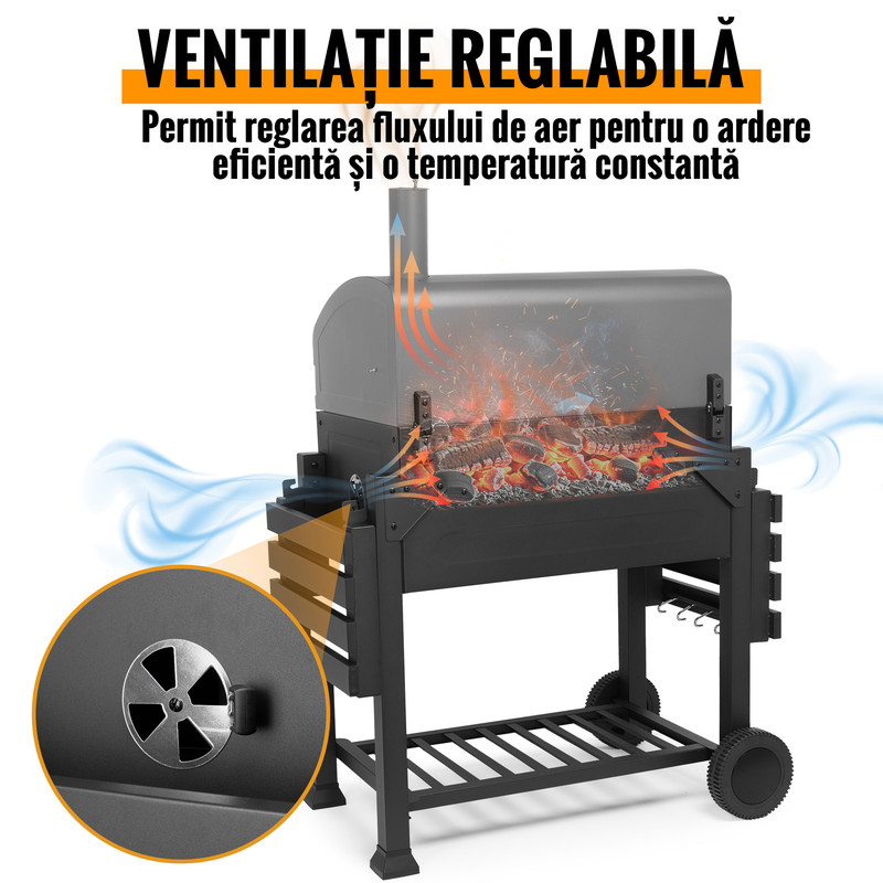 Sistem inteligent AirWave² de ventilatie reglabila, permite ajustarea precisa a fluxului de aer. Astfel, asiguri o ardere eficienta a carbunelui si mentii temperatura constanta pentru preparate perfect gatite de fiecare data.