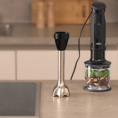 Mixer vertical Braun MQ50202M, 1000 W, 21 trepte viteza, Functie Turbo, Tocator 350 ml, Tel, Pahar gradat 600 ml, Negru