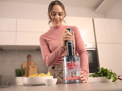 Mixer vertical Braun MQ55254M, 1000 W, 25 trepte viteza, Functie Turbo, Tocator SizeControl 500 ml, Pahar gradat 600 ml, Tel, Negru/Inox