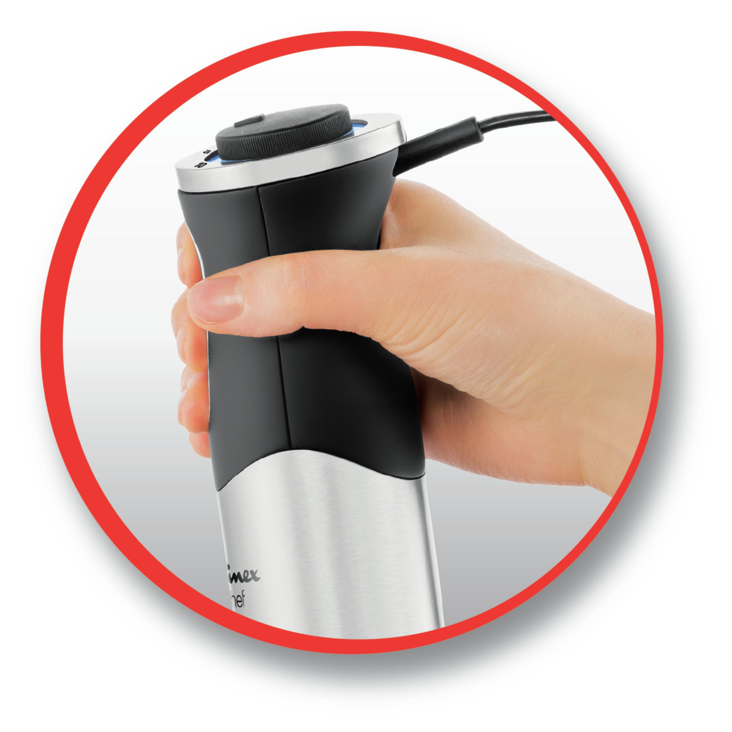 Mixer vertical Tefal QuickChef HB659838, 1000W, 20 de viteze, Functie Turbo, Picior pasator din metal, Pahar gradat 800 ml, Argintiu