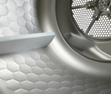 Structura de fagure ridica rufele mai sus in tambur in timpul centrifugarii. Articole sunt expuse mai mult timp la fluxul de aer cald, fiind uscate mai uniform. In hexagoane se formeaza pungi de aer care atenueaza caderea rufelor. Rufele dvs. sunt tratate mai atent si se sifoneaza mai putin dupa uscare, fapt care simplifica sesiunile de calcat. In plus, calcatul este simplificat in mod considerabil.