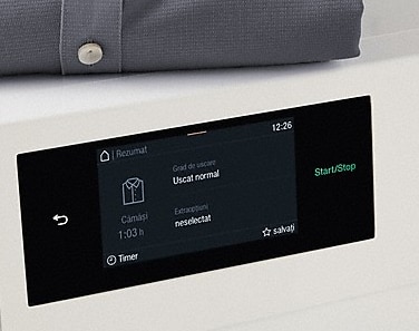 Fie ca e o pereche de blugi, o bluza sau doar un ciorap: gratie functiei AddLoad, puteti cu usurinta adauga orice rufe pe care le-ati uitat – pana aproape de finalul programului. Operatiunea e simpla: apasati butonul „Start/Add laundry“, iar usa se deschide la o apasare de buton.